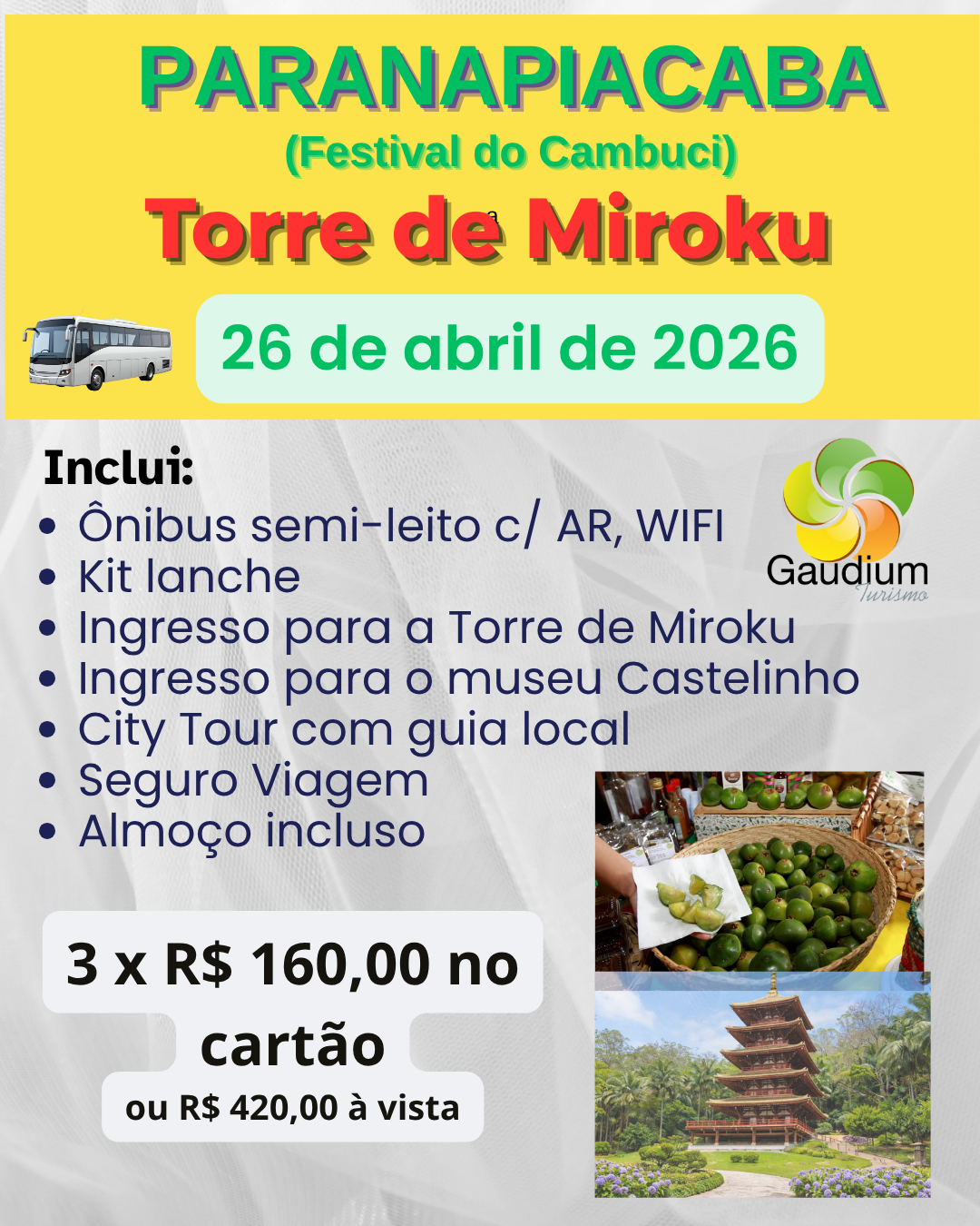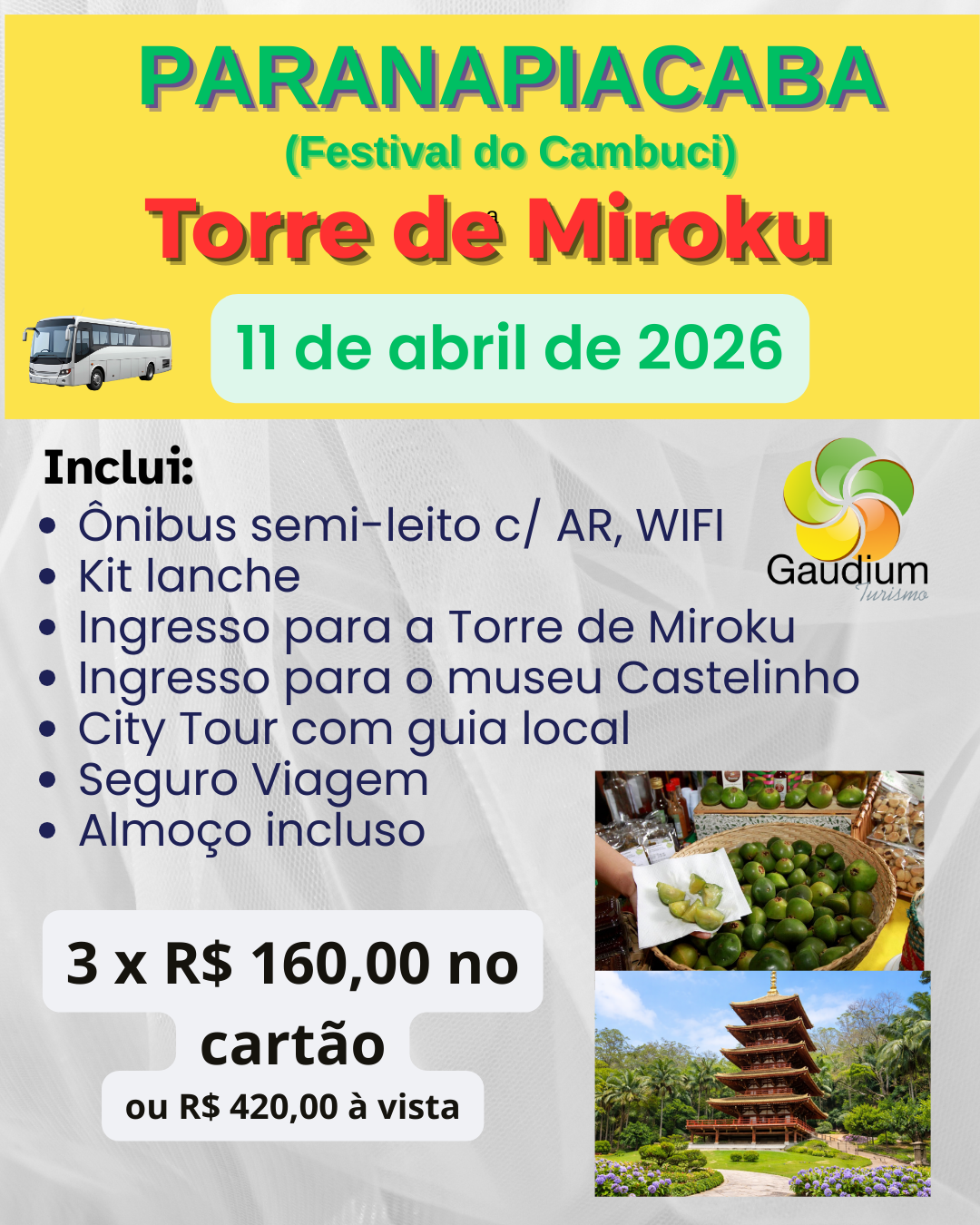 09H30 – Visita a Torre de Miroku em Ribeirão Pires (ingresso incluso)